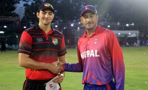१४ असोज, काठमाडौं । त्रिकोणात्मक टी-२० सिरिजमा नेपालले जिम्बाब्वेसँग दोस्रो हार व्यहोरेको छ । मंगलबार भएको खेलमा जिम्बाब्वेले नेपाललाई ४० रनले हराएको हो । सिंगापुरमा जिम्बाब्वेले दिएको १६१ रनको लक्ष्य पछ्याएको नेपालले २० ओभरमा ९ विकेट गुमाएर १२० रन मात्र बनाउन सक्यो । विनोद भण्डारीले व्यक्तिगत ३३ र आरिफ शेखले २५ रन बनाए पनि नेपाली […]