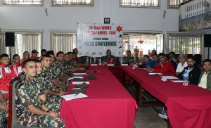 १५ असोज, काठमाडौं । नेपाली सेना पहिलो पटक ‘विश्व सैन्य खेलकुद’ प्रतियोगितामा सहभागी हुने भएको छ । नेपाली सेनाले बुधबार काठमाडौंमा पत्रकार सम्मेलन गरी चीनको यूहान प्रान्तमा आगामी कार्तिक १ गतेदेखि सुरु हुने सातौं विश्व सैन्य खेलकुद प्रतियोगितामा पहिलो पटक सहगागी हुन लागिएको औपचारिक जानकारी गराएको हो । अन्तर्राष्ट्रिय सैनिक खेलकुद परिषदको आयोजनामा यो वर्ष […]