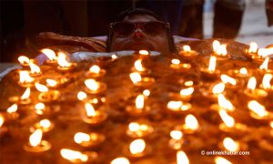 २१ असोज, धादिङ । बहुसङ्ख्यक हिन्दू धर्मावलम्बी पशुबलि दिएर दशैँ मनाइरहेका बेला बौद्धधर्मावलम्बी भने फूलपातीदेखि गुम्बाहरुमा न्युङ्ने अर्थात् मौन ब्रत बसिरहेका छन् । उनीहरु दशैँमा बलि दिइने प्राणीहरुको आत्माको शान्तिको कामना गर्दै मौन व्रत बसेका हुन् । दशैंमा बलि दिइएका पशुपक्षीको आत्माको शान्तिका लागि बौद्धधर्मावलम्बीले मौन ब्रत बसी धादिङका १९ गुम्बामा ध्यान गरिरहेको लामा गुरु […]