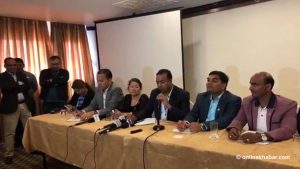 २७ असोज, काठमाडौं । आफू नआउँदै पत्रकार सम्मेलन गरेको भन्दै गैर आवासीय नेपाली संघ (एनआरएनए) का अध्यक्ष भवन भट्ट रिसाएपछि एनआरएनएले सोमबार नै दोस्रो पटक पत्रकार सम्मेलन गरेको छ । सोमबार बालुवाटारस्थित कार्यालयमा पहिले उपाध्यक्ष कुमार पन्त, महासचिव बद्री केसीसहितका पदाधिकारी सहभागी भएर पत्रकार सम्मेलन गरेका थिए । उक्त पत्रकार सम्मेलन सकिएपछि अध्यक्ष भवन भट्ट […]