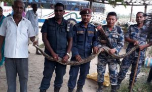 १० कात्तिक, सप्तरी । सप्तरीको खाँडो नदीमा अजिंगर फेला परेको छ । जिल्लाको तिलाठी–कोइलाडी गाउँपालिका स्थित १ खाँडो खोलामा अजिंगर फेला परेको प्रहरीले जनाएको छ । अन्दाजी ७ फिट लामो र १२ किलो तौल भएको अजिंगरलाई नेपाल तथा सशस्त्र प्रहरीले नियन्त्रणमा लिई जिल्ला वन कार्यालयको टोलीलाई बुझाइएको जिल्ला प्रहरी कार्यालय सप्तरीले जनाएको छ ।