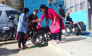 १० कात्तिक, गोरखा । अपाङ्गता भएका कारण हिँडडुल गर्न नसक्ने व्यक्तिहरुलाई गोरखामा ह्विलचियर वितरण गरिएको छ । जिल्ला सदरमुकाममा एक कार्यक्रमको आयोजना गरी २० जनालाई ह्विलचियर वितरण गरिएको हो । विश्व स्वास्थ्य संगठनको मापदण्ड अनुसार ह्विलचियरको नापजाँच समेत गरिएको गोरखा नेत्रहिन संघका अध्यक्ष पवन बस्नेतले बताए । ‘यस अघि वितरण भएका ह्विलचियरहरु मापदण्ड अनुसार थिए की […]