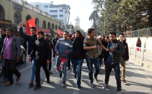 १८ फागुन, काठमाडौं । सेक्युरिटी प्रिन्टिङ प्रेसको कमिसनमा मुछिएका निवर्तमान सञ्चारमन्त्री गोकुल बास्कोटालाई कारबाही गर्नुपर्नेलगायतका माग राख्दै नेपाल विद्यार्थी संघ (नेविसंघ)ले आइतबार काठमाडौंमा प्रदर्शन गरेको छ । नविसंघ त्रिचन्द्र क्याम्पस इकाइले आइतबार बिहान क्याम्पस अगाडि प्रदर्शन गरेको हो । प्रदर्शनमा सहभागीहरुले सरकारविरुद्ध नाराबाजी गरे । सरकारले भ्रष्टाचारलाई प्रश्रय दिएको र करको भार थोपरेको उनीहरुको आरोप […]