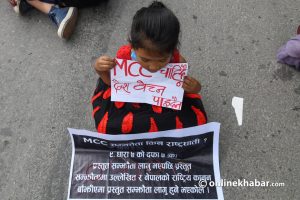 ९ असार, काठमाडौं । अमेरिकी सहयोग परियोजना (एमसीसी) को विरोधमा काठमाडौंको माइतीघरमा दुई समूहले छुट्टाछुट्टै प्रदर्शन गरेको छ । राष्ट्रिय जनमोर्चा, नेकपा क्रान्तिकारी माओवादीसहितका ११ दल र स्वतन्त्र नारीको नाममा एक समूहले प्रदर्शन गरेको हो । ११ दलले एमसीसी सम्झौता खारेज गर्न माग गर्दै प्रदर्शन र सभा गरे । प्रदर्शनका सहभागीले ‘एमसीसी किन राष्ट्रघाती ?’ […]