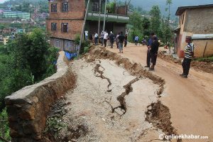 ८ असार, गुल्मी । अविरल वर्षासँगै आएको पहिरोले गुल्मीको सदरमुकाम नजिकै ७ वटा घर जोखिममा परेका छन् । निर्माणाधीन तम्घास–खाम्सेपानी सडक खण्डमा पर्ने रेसुङ्गा नगरपालिका वडा नम्बर–७ स्थित बेतुखर्कमा पहिरो जाँदा घरहरु जोखिममा परेका हुन् । पहिरोबाट राम बहादुर खड्का, लक्ष्मी कुवँर, पदम विष्ट, मुमेन्द्र थापा मगर, पोम नारायण सुवेदी, दीपक सुनार र विष्णु कुँवरको […]