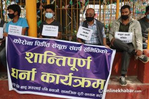 १९ असार, काठमाडौं । विभिन्न माग राख्दै कोरोना पीडित संघर्ष समितिको नाममा शुक्रबार ललितपुरमा प्रदर्शन भएको छ । लकडाउन अवधिको घरभाडा, बैंक ब्याज मिनाहा हुनुपर्ने, विद्यालय शुल्क, कर, कोरोना रोकथाममा भएको खर्च विवरण सार्वजनिक गर्नुपर्ने, सुकुम्बासी, विद्यार्थी र बेरोजगारलाई राहत प्याकेज दिनुपर्ने माग गरेका छन् । सार्वजनिक यातायात सुरक्षित रुपमा सञ्चालन गर्न, कालोबजारी गर्नेलाई कारबाही […]