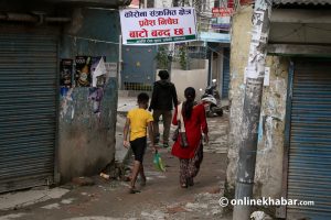 २६ साउन, काठमाडौं । सामान्यतः पैदल हिँड्न पनि दर्जनौं मानिससँग ठोक्किनुपर्ने कोटेश्वरको असर्फी टोल सोमबार दिउँसो सुनसानप्रायः थियो । चोकको उत्तरतर्फको एउटा बस्तीका सटरमा ताला लागेका थिए । अग्ला भवनका गेटहरु बन्द थिए । मानिसहरु मास्क लगाएर झ्यालबाट चिहाइरहेका थिए । बस्तीको गल्लीमा छिर्ने नाकामा ब्यानर टाँगिएको थियो- ‘कोरोना संक्रमित क्षेत्र । प्रवेश निषेध ।’ […]