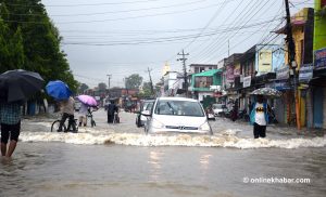 २६ साउन, कैलाली । पानी निकासको व्यवस्था नहुँदा धनगढी बजार डुबानमा परेको छ । सोमबार बिहान परेको वर्षाका कारण धनगढी उपमहानगरपालिकाभित्र ३ सय भन्दा बढी घरमा पानी पसेको जिल्ला प्रहरी कार्यालय कैलालीले जनाएको छ । मुख्य सडकमा करिब २ फिट पानी जमेको थियो । धनगढीको एलएनचोक, क्याम्पस चोक, शिव नगर, वसन्तपुर, मिलन चोकलगायतका क्षेत्रहरूमा सबै […]