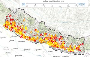 १३ चैत, काठमाडौं । चैतको दोस्रो हप्तामै देशभर वनजंगलमा डढेलो फैलिएको छ । वन विभागको तथ्यांकअनुसार शुक्रबार मात्रै ४३७ ठाउँका वनजंगलमा आगलागी भइरहेको छ । यो गत वर्षको यही अवधिको तुलनामा उच्च दरको वनडढेलो हो । वन विभागका जीआईएस शाखाका उपसचिव सुन्दर शर्माका अनुसार ५४ जिल्लाका वनमा डढेलो देखिएको छ । विभागका अनुसार पश्चिम तराई, […]