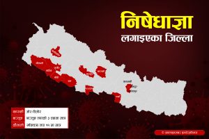 १४ वैशाख, काठमाडौं । सरकारले कोरोना भाइरस संक्रमणको दोस्रो लहर नियन्त्रणका लागि १० जिल्लामा पूर्ण र तीन जिल्लामा आंशिक निषेधाज्ञाको आदेश जारी गरेको छ । कोभिड–१९ संकट व्यवस्थापन केन्द्र (सीसीएमसी) ले शहरी क्षेत्रमा ५ सय र पहाडमा २ सय जना सक्रिय संक्रमित भए प्रमुख जिल्ला अधिकारीले निषेधाज्ञा लगाउन सक्ने निर्णय गरेको थियो । त्यही निर्णयमा […]