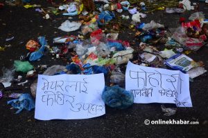 १४ असार, काठमाडौं । काठमाडौं उपत्यकाभर बाहिर फालिएका फोहोर समेत नउठेर दुर्गन्ध फैलिरहेको छ । सडक, नदी किनार, गल्ली र चोकमा फोहोरको डंगुर छन्, घर-घरमा थुप्रिएको फोहोर उठाउन जनताले महानगरपालिका र नगरपालिकाका जनप्रतिनिधि तथा कर्मचारीलाई खोजिरहेका छन् । सोमबार काठमाडौं महानगरपालिकाका प्रमुख प्रशासकीय अधिकृत राजेश्वर ज्ञावाली माइतीघर-तीनकुने खण्डमा नगरप्रहरी प्रहरीसँगै देखा परे । नगर प्रहरी […]