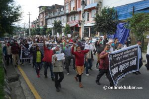 १० असोज, काठमाडौं । बुढीगण्डकी आयोजना निर्माणका लागि दबाब दिँदै गोरखा र धादिङका वासिन्दाले आइतबार काठमाडौंमा प्रदर्शन गरेका छन् । आयोजना डुवान क्षेत्रमा विकास निर्माणको काम ठप्प भएको र आफूहरु सुकुम्बासी हुने स्थिति आएको भन्दै प्रभावित क्षेत्रका वासिन्दाले आयोजना छिटो शुरु गर्न माग गरेका हुन् । बुढीगण्डकी जलविद्युत आयोजना राष्ट्रिय सरोकार समितिको आयोजनामा असोज ४ […]