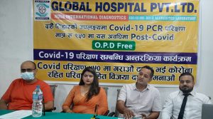 १० असोज, काठमाडौं । ग्वार्कोस्थित ग्लोबल अस्पतालले ९५० रुपैयाँमै पीसीआर परीक्षण गर्ने भएको छ । अस्पतालले दशैं तिहारलाई लक्षित गरी सरकारले तोकेभन्दा कम शुल्कमा पीसीआर विधिबाट कोभिड -१९ परीक्षण गर्ने घोषणा गरेको हो । सरकारले पीसीआर परीक्षणका लागि निजी प्रयोगशालालाई २ हजार रुपैयाँ र सरकारी प्रयोगशालालाई १ हजार रुपैयाँ शुल्क तोकेको छ । अस्पतालका मेडिकल […]