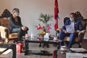 ११ कात्तिक, काठमाडौं । शिक्षा, विज्ञान तथा प्रविधिमन्त्री देवेन्द्र पौडेल र स्विट्जरल्याण्डका राजदूत एलिजाबेथ भोन क्यापेलरबीच शिष्टचार भेटवार्ता भएको छ । बिहीबार बिहान मन्त्रालयमा भएको भेटवार्तामा प्राविधिक तथा व्यवसायिक परियोजनामा लगानी गर्ने विषयमा छलफलसमेत भएको छ । भेटवार्ताको क्रममा मन्त्री पौडेलले स्विट्जरल्याण्ड सरकारले नेपालमा प्राविधिक शिक्षाको विकास र विस्तारका लागि लामो समयदेखि प्राविधिक र आर्थिक […]